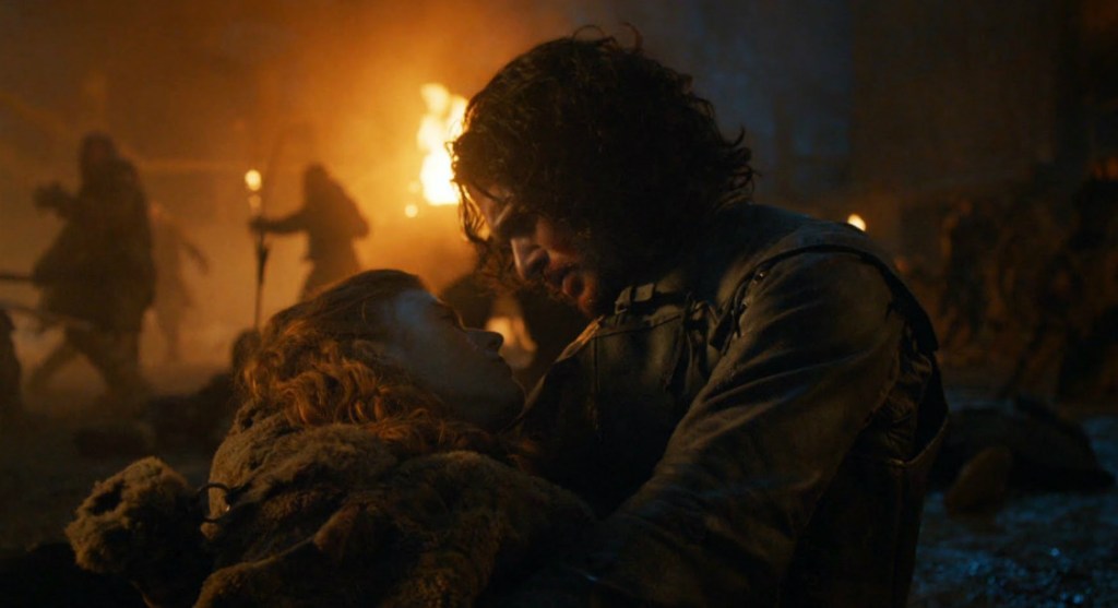 La bataille à Chateaunoir se termine par… la mort d’Ygritte. Bon, même si j’en avais franchement marre qu’elle lui dise sans arrêt « You know nothing Jon Snow », c’est super triste.